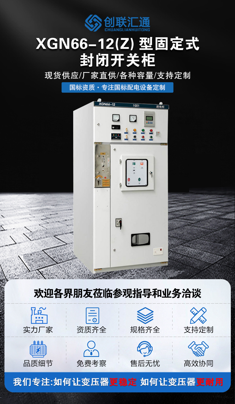 XGN66-12(Z)箱型固定式金屬封閉開關(guān)設(shè)備(簡稱開關(guān)柜)用于3、6、10kV三相交流50Hz系統(tǒng)中作為接受與分配電能之用。其母線系統(tǒng)為單母線(可派生出單母線帶旁路和雙母線)結(jié)構(gòu)。